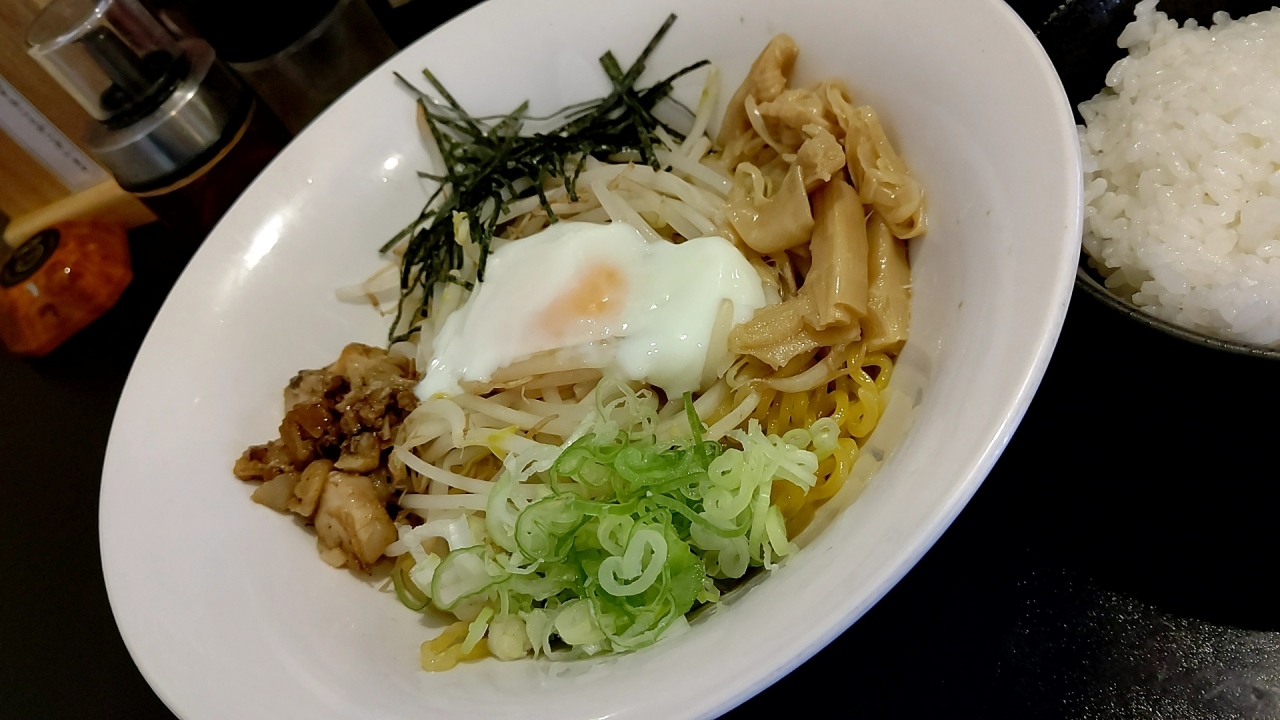 ここは背脂激盛りの醤油らーめんがおすすめですが、中毒者続出と言われている油そばを注文。