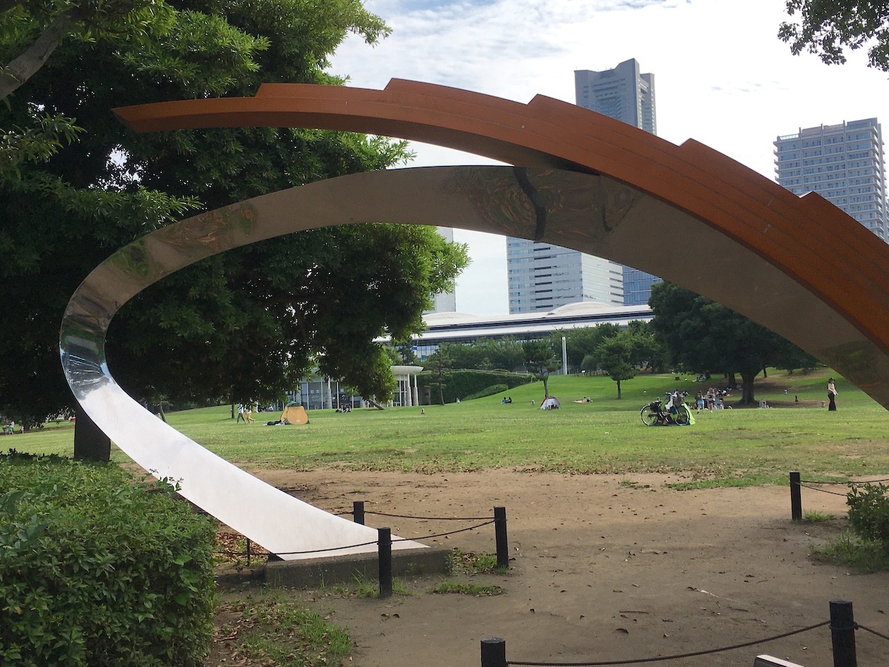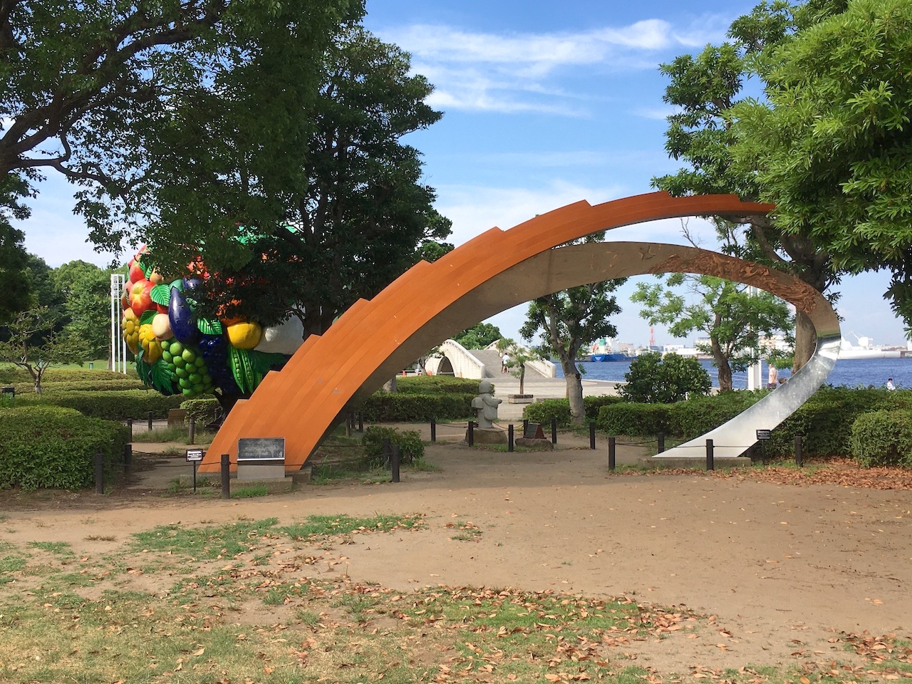 臨港パーク内の緑地にあるモニュメントで、見る角度により様々な物に見えるらしいです。