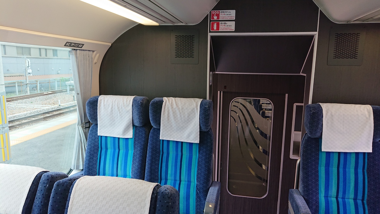 休日の朝に、新安城駅から、展望席の5列目に乗車