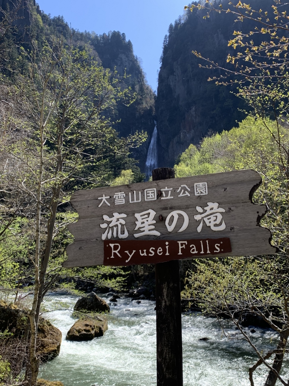 層雲峡の名所で駐車場からまたは20分ほど斜面を上がった双瀑台から見ることができました。太い1本の滝となって水量が多く力強く流れ落ちるのが流星の滝です。一方銀河の滝は白い繊細な糸のような細い滝です。それぞれ表情があります。駐車場のすぐ近くから見ることが出来るので涼しく感じました。