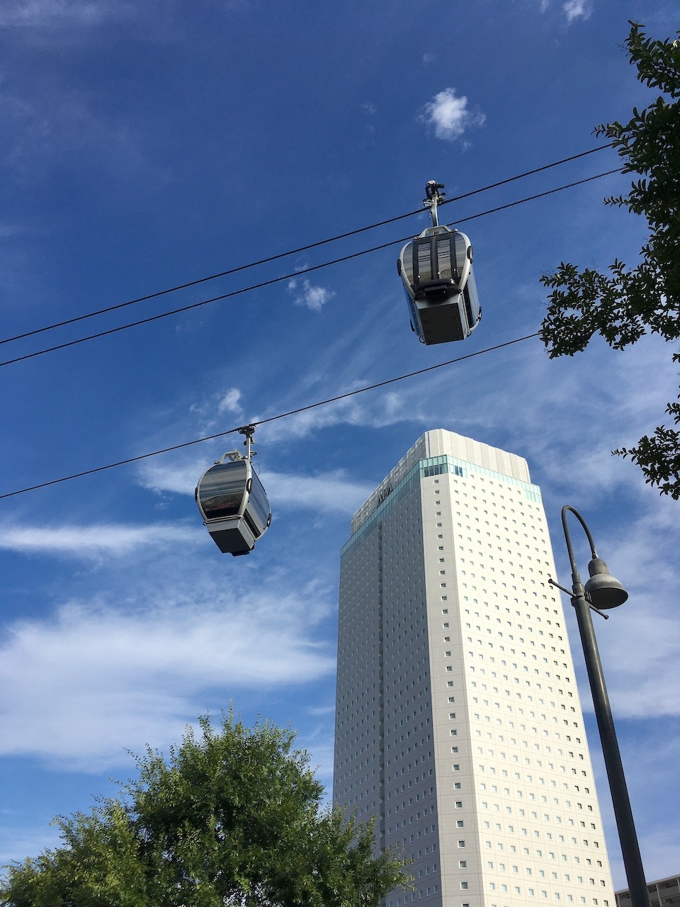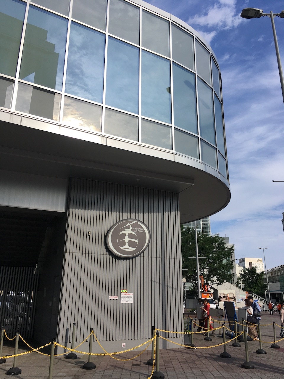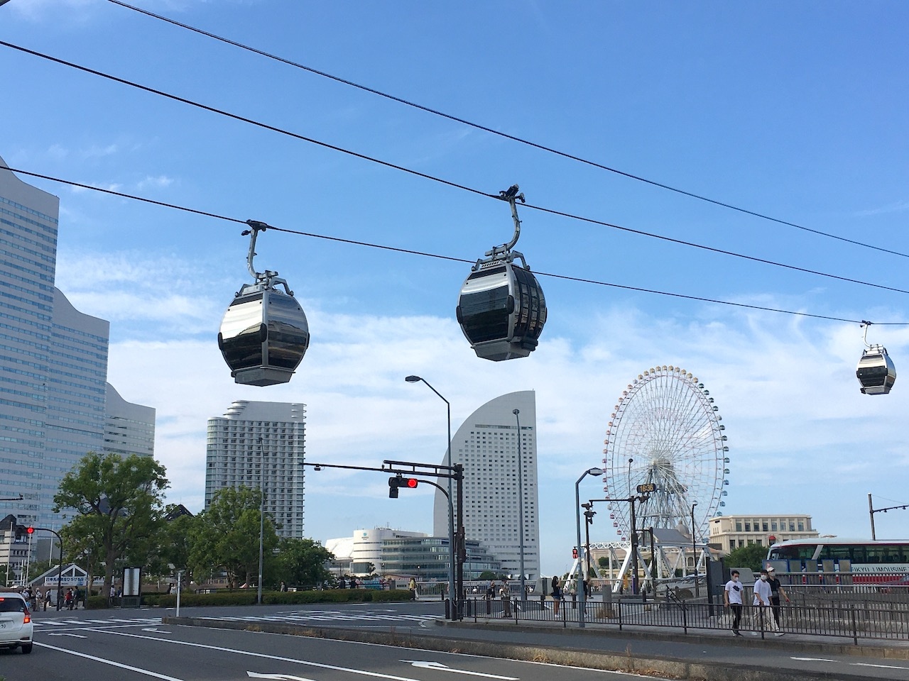 球形をした銀と黒のゴンドラが、桜木町駅前から運河パークまでの上空を行き来していました。