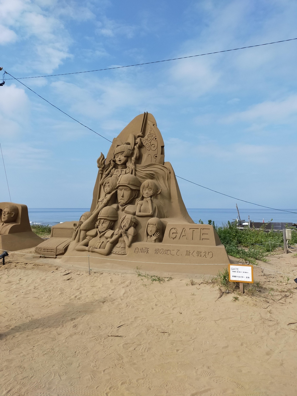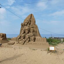 千里浜レストハウスの駐車場脇にドラえもんや鬼滅の刃のサンドアートが鎮座していた。