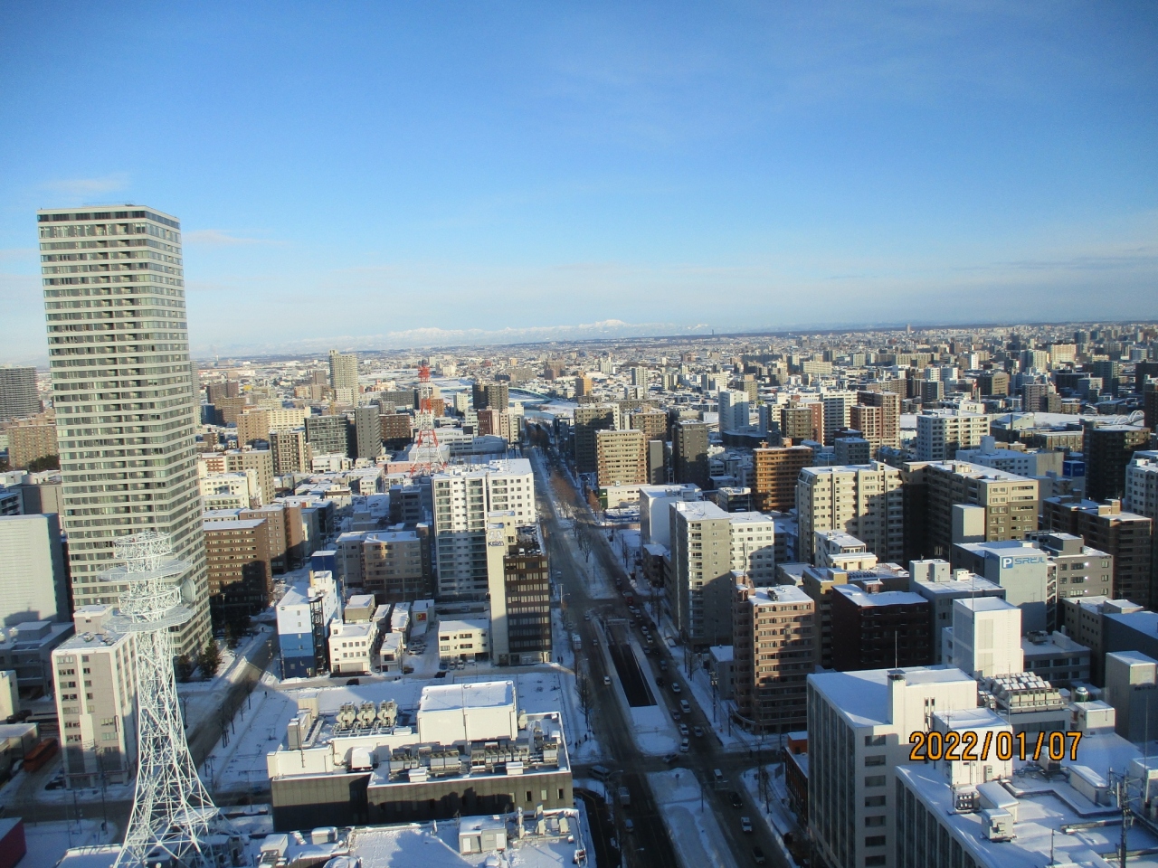 大通り公園にあり、札幌のランドマークのようになっています。高さ90メートルの展望台に上がれば、街を見下ろし、遠くまで展望できます。展望台から見える雪の積もった大通り公園、冬の札幌の街並みはきれいでした。