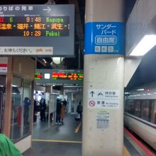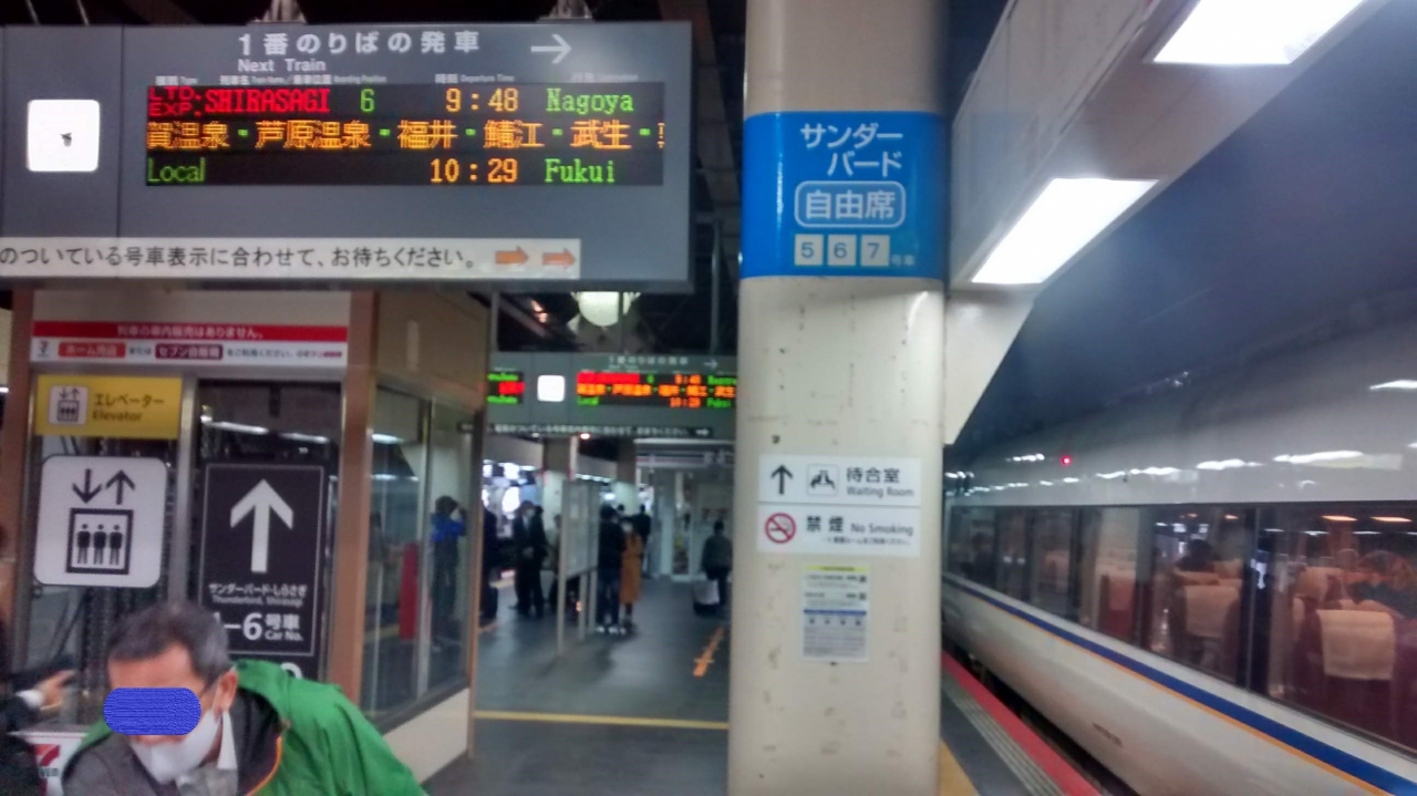 まだ新幹線が運行していない金沢・福井間を移動するのに、在来線の特急しらさぎは、大変快適で絶対おすすめです。添付写真のように、写真右側の車両がシラサギで、鳥のシラサギのイメージっぽい色・デザインだなと思いました。