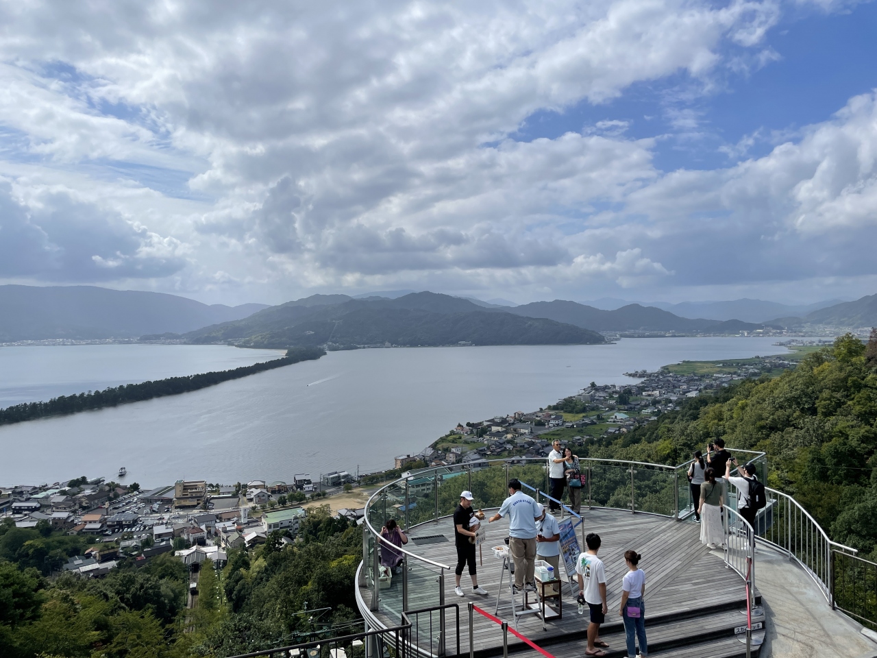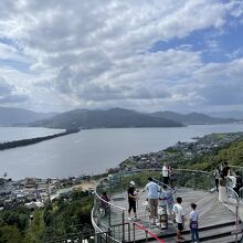 新しくきれいな展望台や、股のぞきができる台など天橋立を色々に見られるような場所がありました。ここから見る天橋立は形がよくわかります。龍の頭は向こう岸になります。