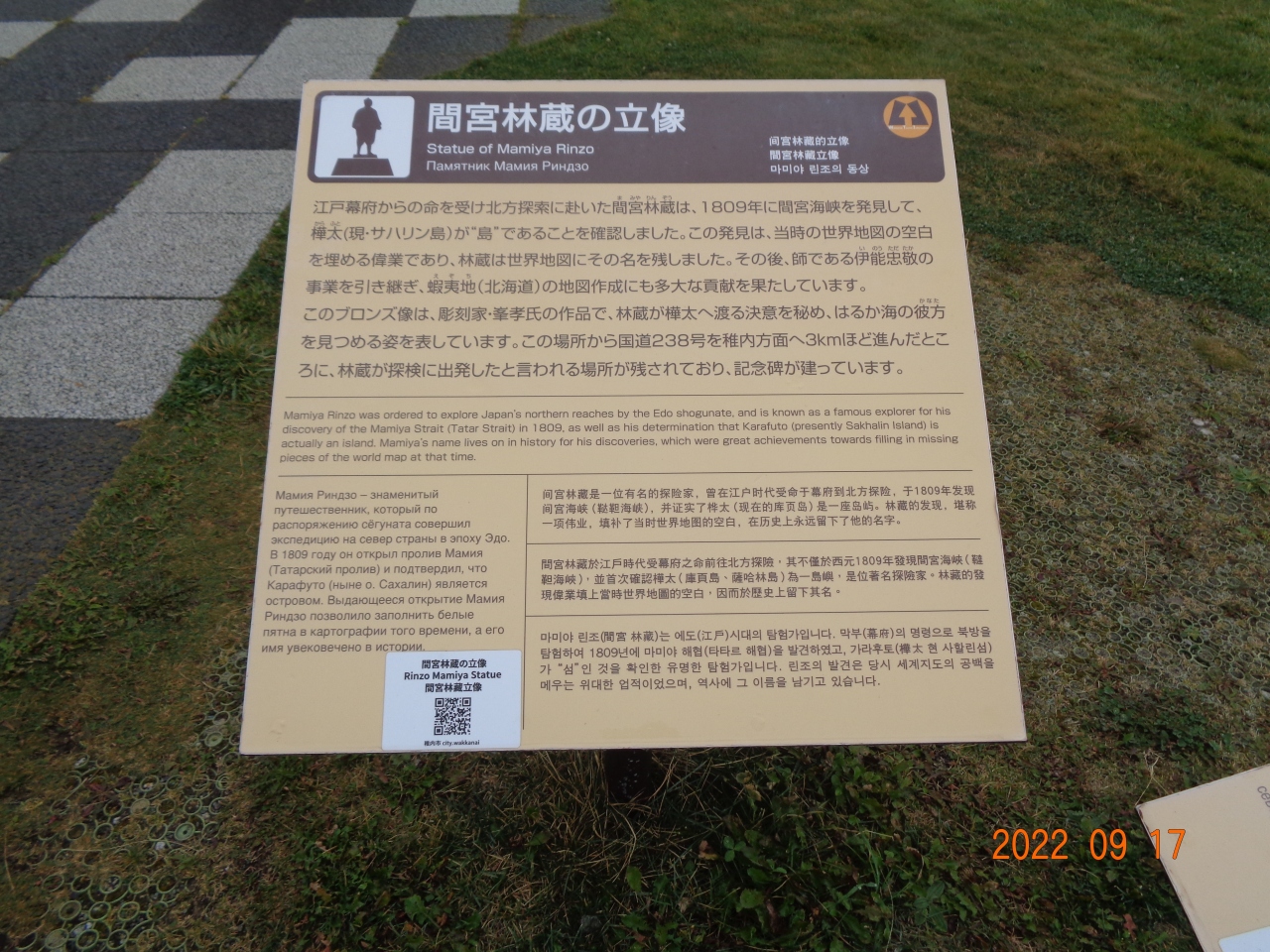 長年忘れてましたが近年最北端の地に行くにあたり、間宮林蔵が宗谷岬と関連していることが分り調べると、1809年に樺太に探検行くと樺太はシベリアとは海峡があり島だという事を発見した偉人でした。
