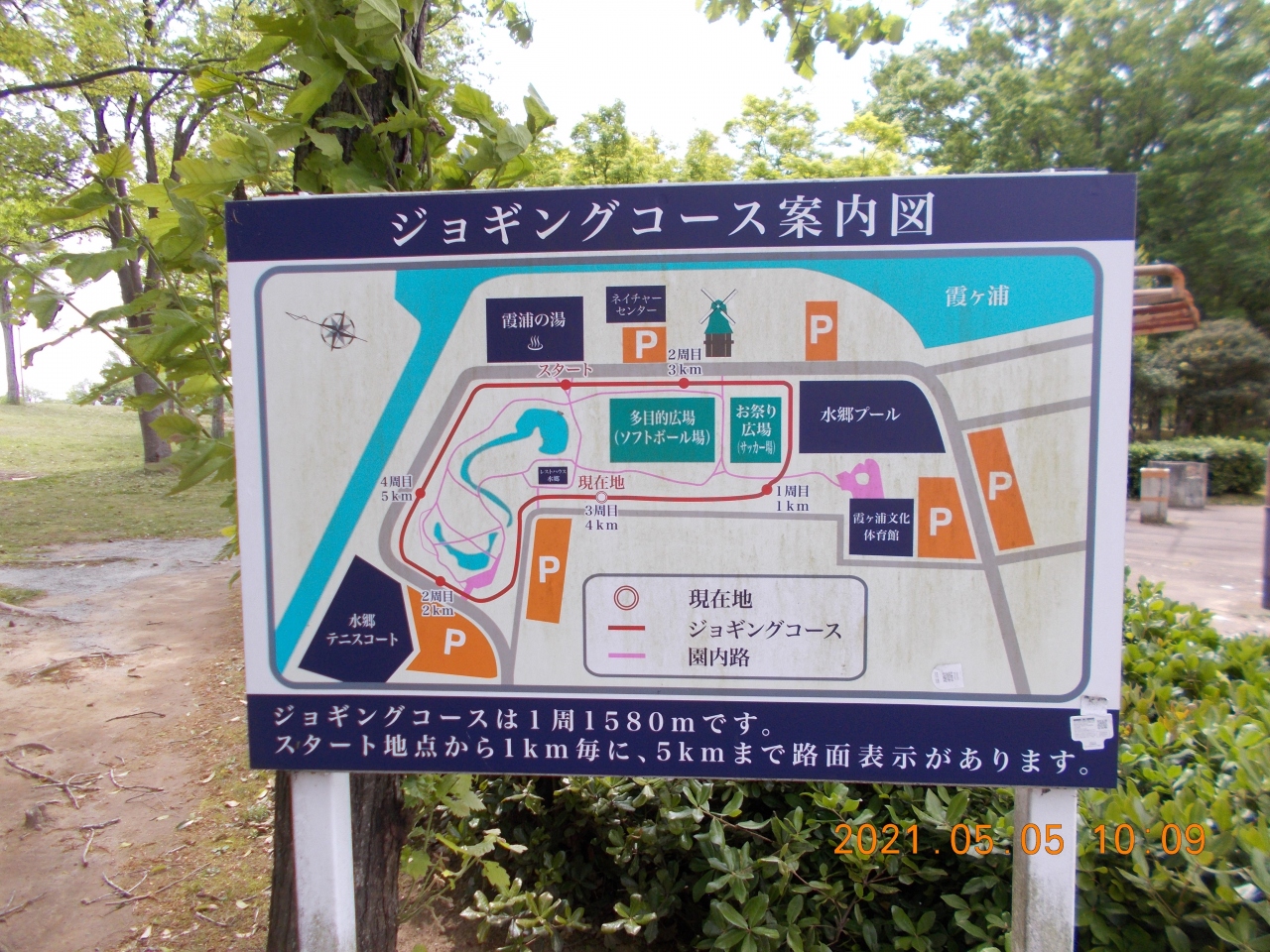 公園の外周は車が入ってこないジョギングコースとなっていて、ジョギングをする人も一方通行となっている。1歳半の子を乳母車に載せて一周してみると、ところどころ引っかかるところもあるが、段差も少なく、車と交差することもないので、安全なコースであった。