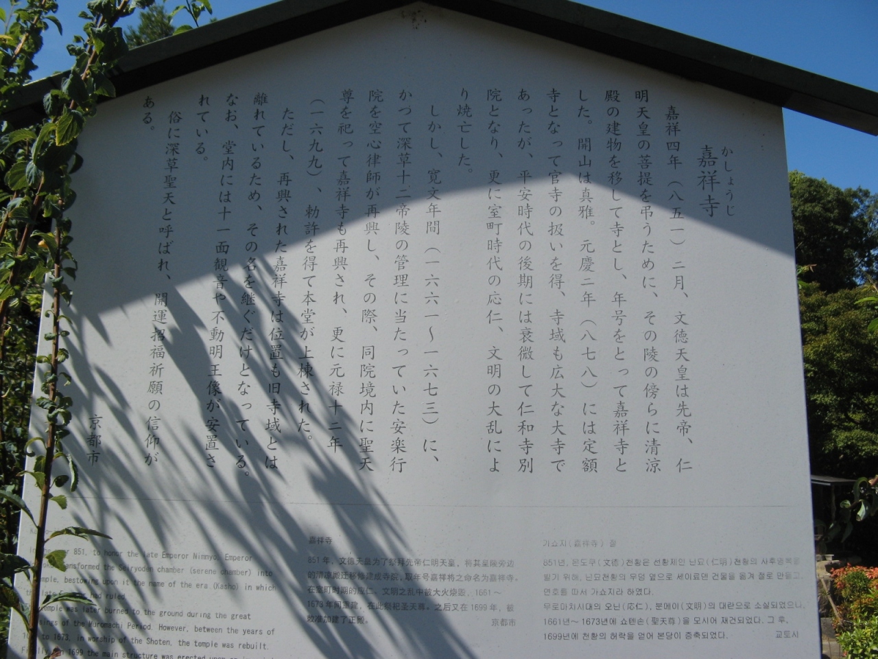 京阪本線藤森駅から歩いて10分余りのところに鎮座されています。現地にあった由緒書き(添付写真参照)によると、嘉祥4年(851年)文徳天皇が先帝の仁明天皇の菩提を弔うために建立されたと言う古い歴史を持つお寺さんで、通称・深草聖天と呼ばれ開運招福の信仰があるそうです。小さなお寺さんですが、境内の植栽が綺麗に手入れされ静かでとてもいい雰囲気でした。