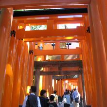 伏見稲荷大社の本殿の奥から稲荷山に向かう途中に朱色に「千本鳥居」が建ち並んでいます。朱色に塗られた鳥居が美しく建ち並ぶ風景に感動しましたが、外国人や修学旅行生など観光客が多くて神秘的な雰囲気を感じることはありませんでした。異空間にいるようなより不思議な感じを体感するのなら観光客が殆んどいない早朝がよいかも。