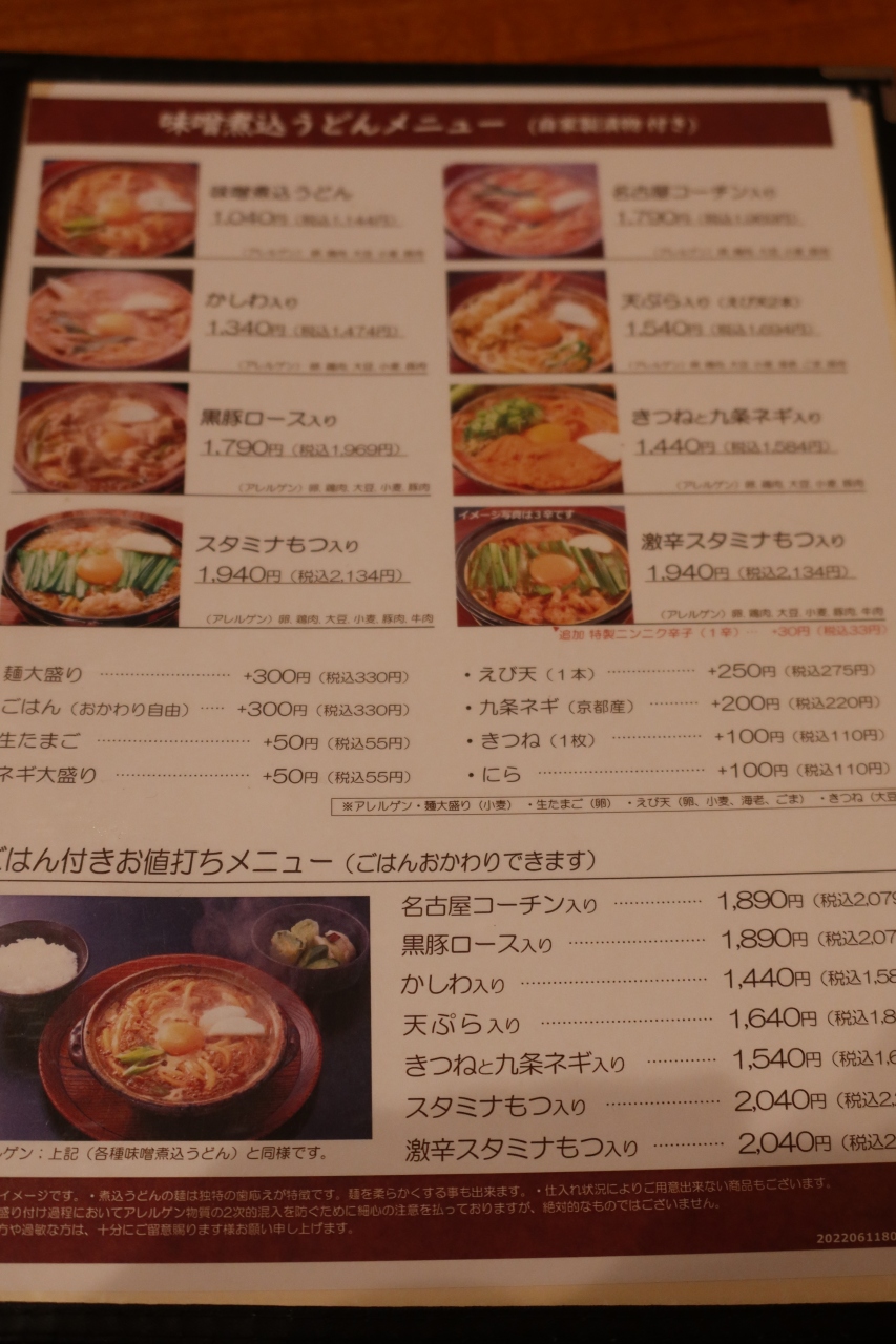 白川公園の北東約50mの所にある味噌煮込みうどん 山本屋本店の支店です。名古屋市科学館を見学した後に早めの夕食で5時半頃に伺いました。待つこともなく入店でき、4人席に座れました。頂いたのは勿論、味噌煮込みうどん(天ぷら入り)ですが、サイドメニューに玉子焼きと、お揚げを頂きました。玉子焼きは唐辛子が入っており、ピリリと辛さが美味。お揚げは普段焼いて食べませんが、大根おろしをつけて食べるのも美味しいです。