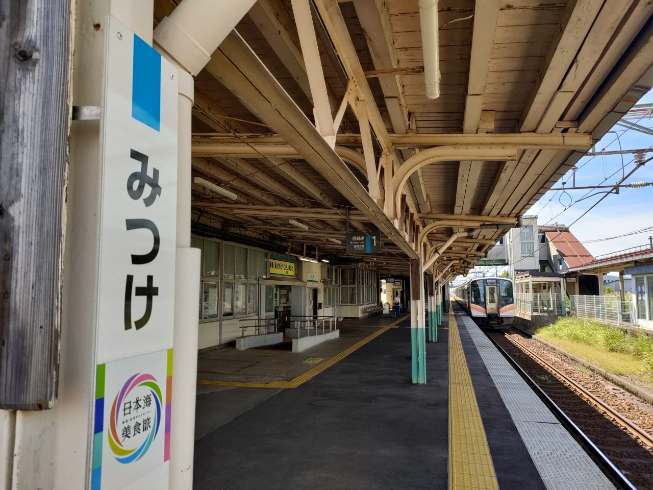 その他、駅には、夏場はエアコンが効いた自販機のある待合室がありますが、コインロッカーは見当たりませんでした。見附駅は、新潟エリアのSuicaの利用駅で、自動改札となっているほか、駅窓口があって、営業時間は朝7時から夜7時まで。窓口に言うと駅のスタンプが押せるそうです。