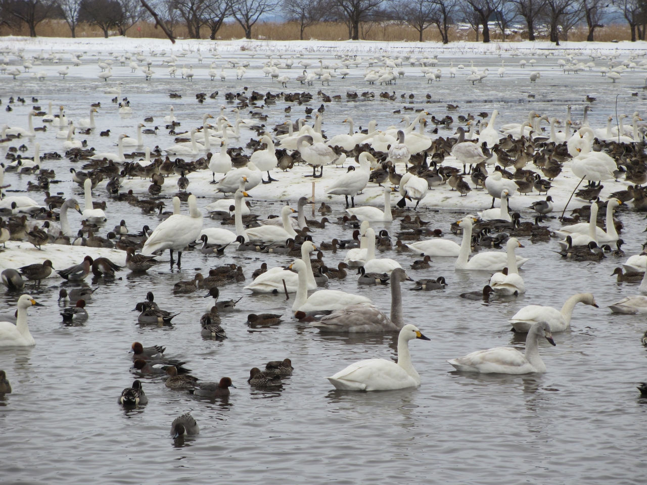 かなり寒かったけど、沢山の白鳥とおしどり?