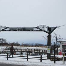 車道を渡ると見える。