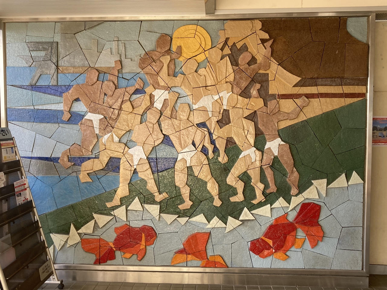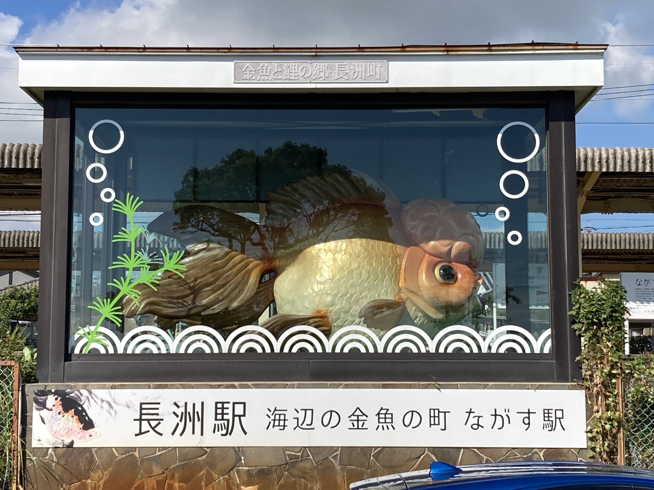 金魚が町の名物となっていて、大きな金魚のオブジェが展示されていました。