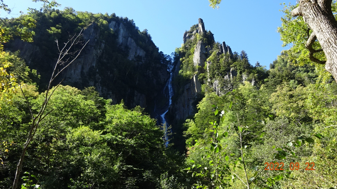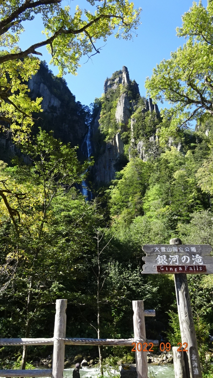 石狩川沿い、層雲峡の断崖絶壁の奇岩が沢山ある中で、目立つのが流星の滝と銀河の滝の間にある不動の岩です。