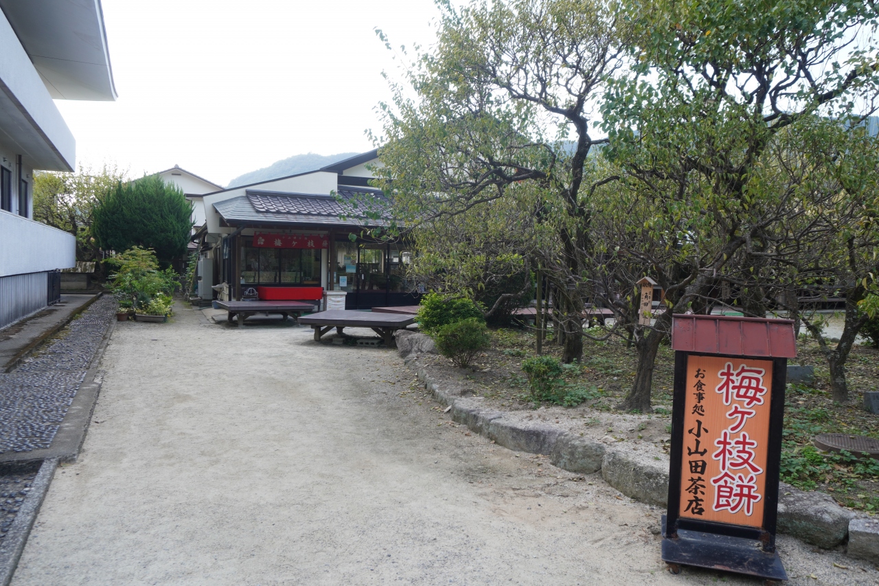 小山田茶店は、菅公歴史館のちょうど真裏のお店。この辺りから、天開稲荷社の上り口かけて、いくつも茶店がありますが、その一つ。梅ヶ枝餅の評判が良かったのでそれをいただきました。梅ヶ枝餅はどのお店もあんまり違いはないと思いますが、ここのは餡子の強烈な甘さが特徴かな。それがけっこうおいしくて印象に残りました。