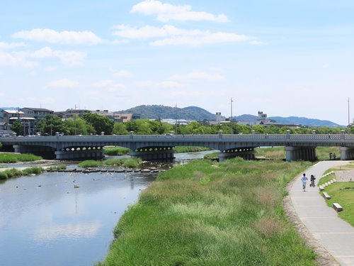賀茂川と高野川の合流点にかかる橋です。かなり歴史がある橋らしいですが、現在の橋が架けられたのは昭和初期とのこと。橋長142メートルは鴨川にかかる橋のなかでは最長なのですね。このときは京都御苑をじっくり見てまわってから、この橋の中央までいって合流点の鴨川デルタを目に焼き付け、さらに賀茂川左岸を上賀茂神社まで進みました。