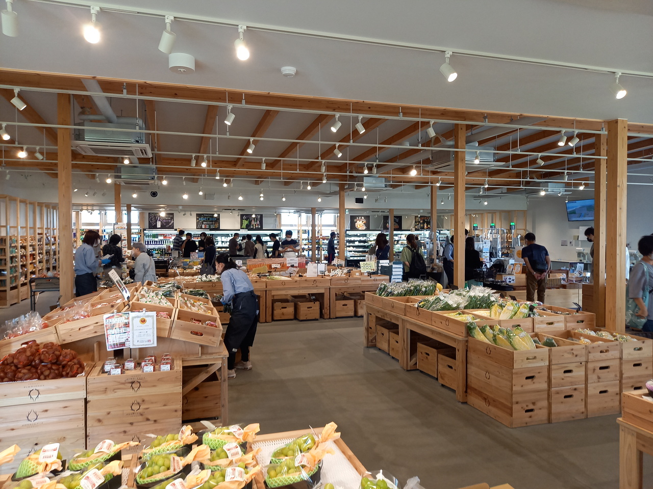 開放的な店内には新鮮な野菜や果物などが見やすい高さで陳列されていました。