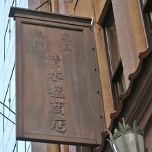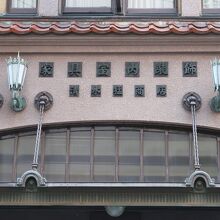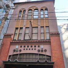 大正13年に建てられた、家具・室内装飾を扱う個人商店さんの小さな町家建築です。縦長のアーチ窓が並び、和風の看板がかかっていました。上層部と下層部の境界にある瓦がアクセントになっています。チェーンで吊り下げられた金属製の庇や照明がレトロでした。