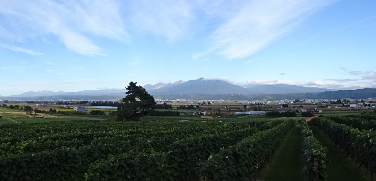 周りをブドウ畑に囲まれた、大雪山連峰を真正面に見える場所にあります。