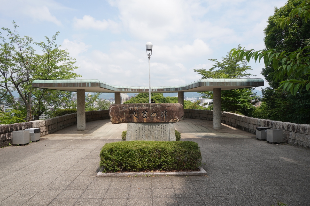 ここは、映画「カスタムメイド10.30」(2005年)のロケ地にもなったところ。正面には比治山橋から広島の市街が広がります。陸軍墓地の方にも展望所がありますが、こちらは「ひろしま文芸の碑」があったり、眺めだけではなくて展望台自身に雰囲気があると思います。