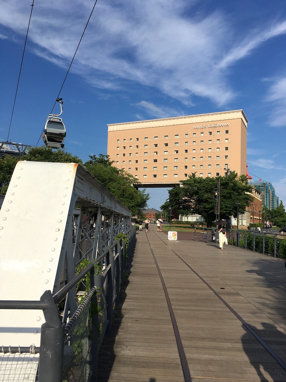 桜木町駅前から東方向に、港に浮かぶ陸地を3つの橋で渡る遊歩道が続いています。
