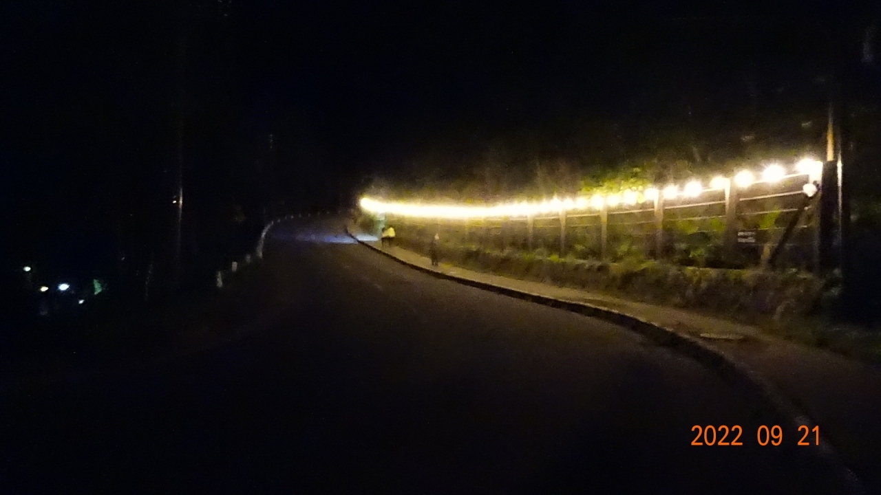 道路わきには小さな電球が並んでいて、夜でも安心して歩けます。