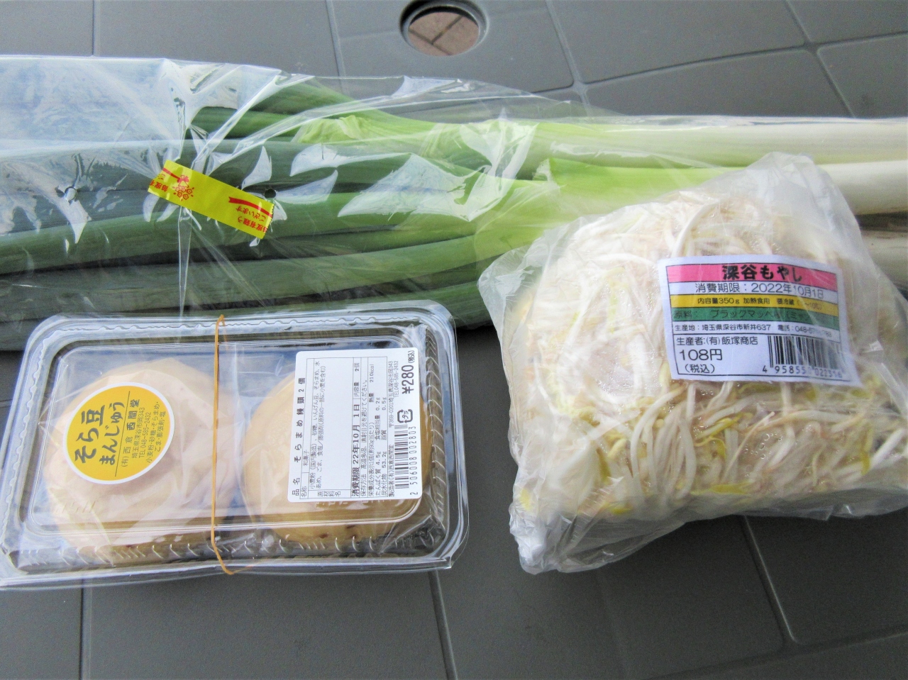「深谷ネギ」「深谷もやし」「空豆まんじゅう」を購入しました。