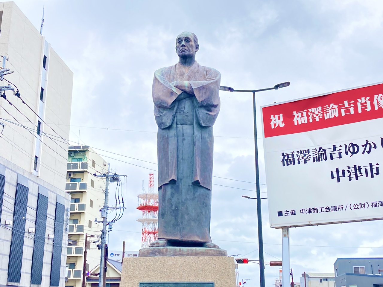 福沢諭吉公は幕末に大阪で生まれましたが、幼少期の中津に移ってきており、ゆかりの地として銅像が立っています。
