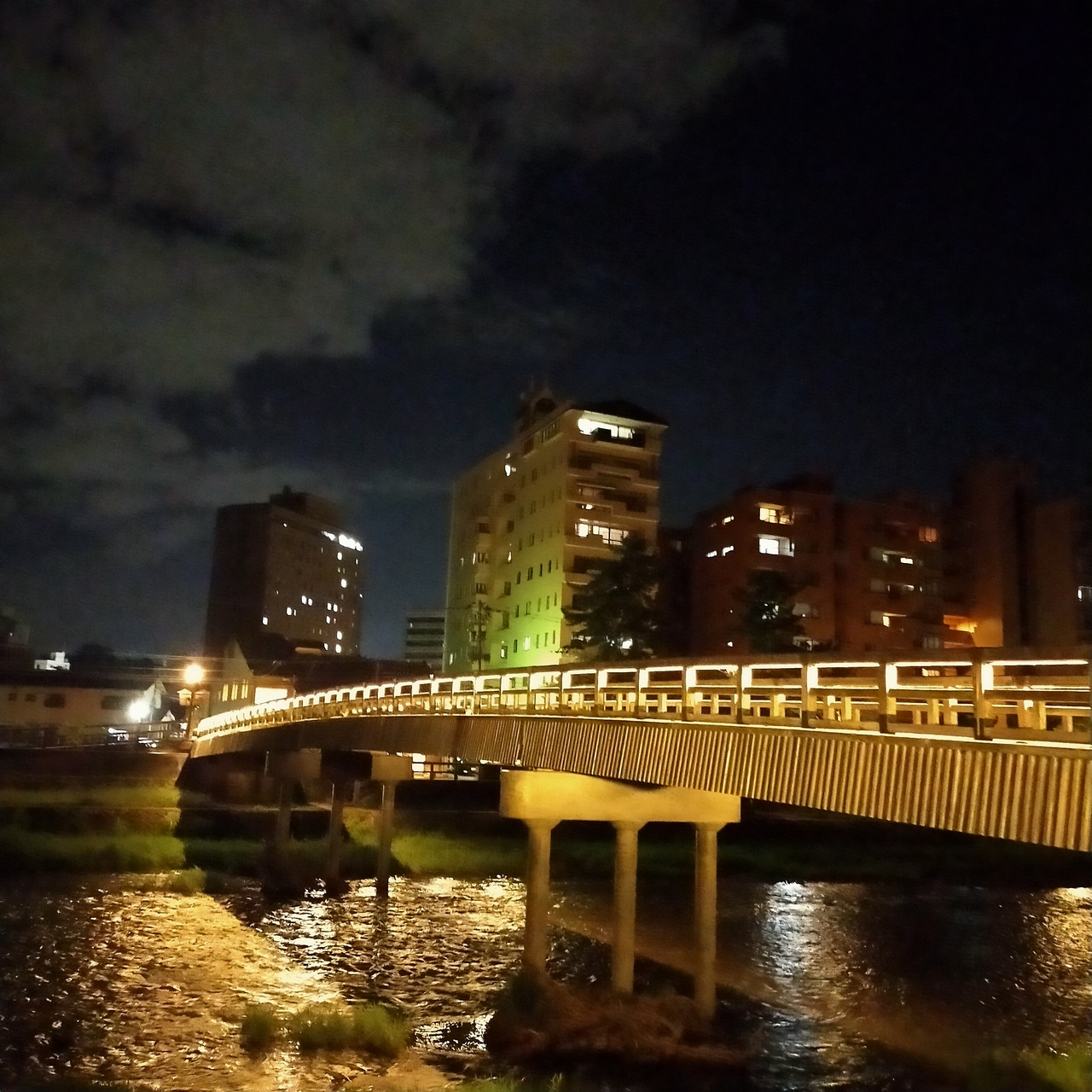 金沢観光でライトアップされた建物をみながら散歩していたら見つけた橋です。浅野川にかかる橋で、木造で橋の作りも歴史を感じ、江戸時代にタイムスリップしたような気分になりました。3連休の中の土曜日の訪問でしたが、他に人はおらず、素敵な橋と静寂を楽しめました。