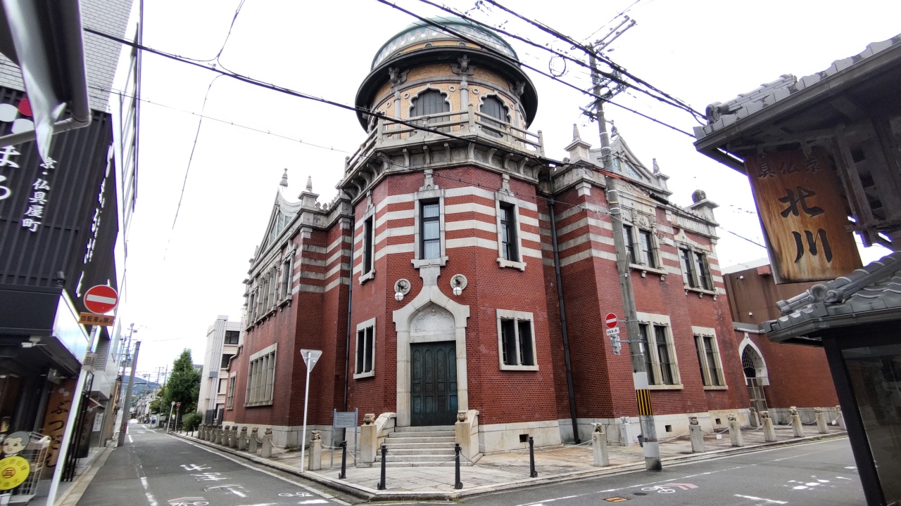 明治建築で多い赤レンガの基礎構造に8柱の円形ドームがのっかった姿は、一種独特の外観でなんとも言えない味がある眺めでした。