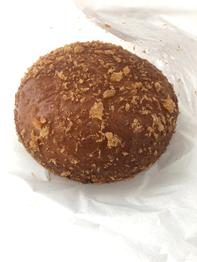お昼には遅いので軽めにカレーパン。400円超となかなかの高級品。注文してから揚げるので、結構待った。揚げたてで熱々。少し油の匂いがする。ものすごく美味しいわけでもないが、まあ悪くもない。