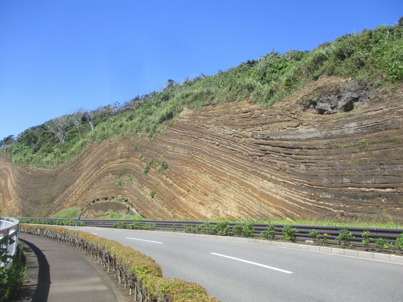 伊豆大島一周道路にわざわざ地層をむき出しにするために削ってくれているそうです。こんなに簡単に自然の地層を見れる場所をあまり知らないので、結構、感動しました。ただし、見学できる場所は特になく、歩道からただ眺めるだけでした。