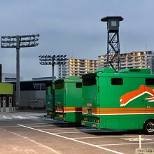 川崎にある競馬場です。翌日にレースをひかえた馬たちが専用車にのせられてちょうどやってきたところをみることができました。