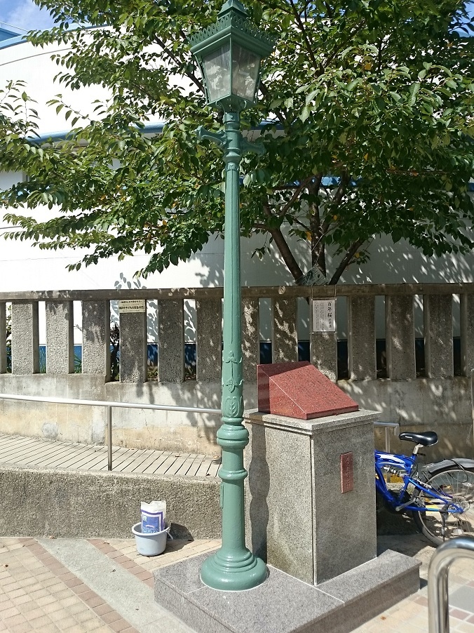 桜木町駅から徒歩3分程度、横浜市中区花咲町の本町小学校の校門前にガス灯と記念碑が立っています。明治3年この場所に高島嘉右衛門という実業家がガス会社を設立したそうです。今まで知りませんでしたが、ガス事業の発祥は東京より横浜の方が早かったのですね。