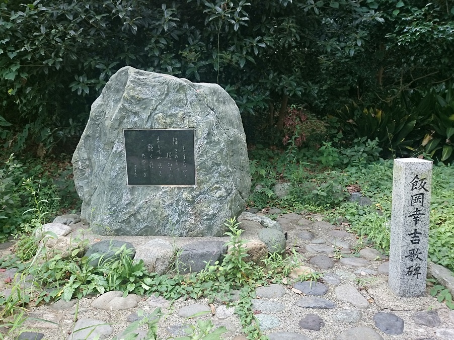 桜木町駅から徒歩15分程度、横浜市西区紅葉ヶ丘の高台にある掃部山公園内に立っています。横浜市西区出身のアララギ派歌人の飯岡幸吉の歌碑です。掃部山公園には他にも井伊直弼像などがあり、文化財の多い公園です。横浜散策の際には立ち寄っておきたい公園だと思います。