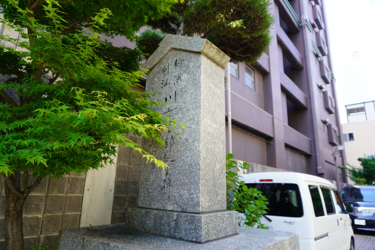 川上音二郎生誕地は、沖濱稲荷神社という小さな神社の入口すぐ。自由民権の書生芝居で一世を風靡したオッペケペー節。その川上音二郎は、元治元年(1864年)博多の商家に生まれます。なお、ほど近くの川端通商店街入り口の方には川上音二郎像もあるし、この石碑もなかなか立派。地元では大事にされていると思います。