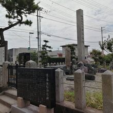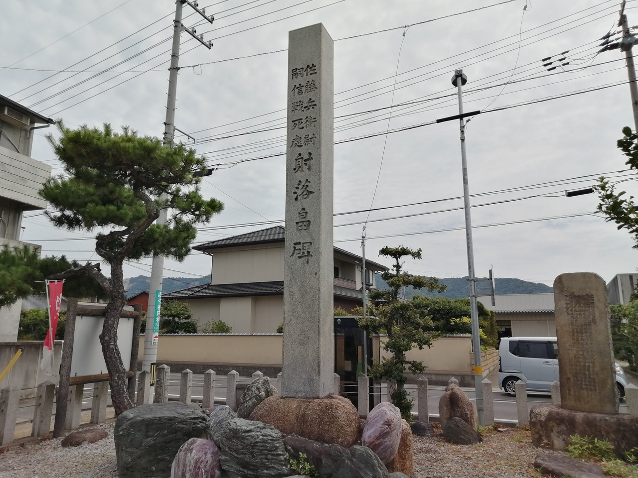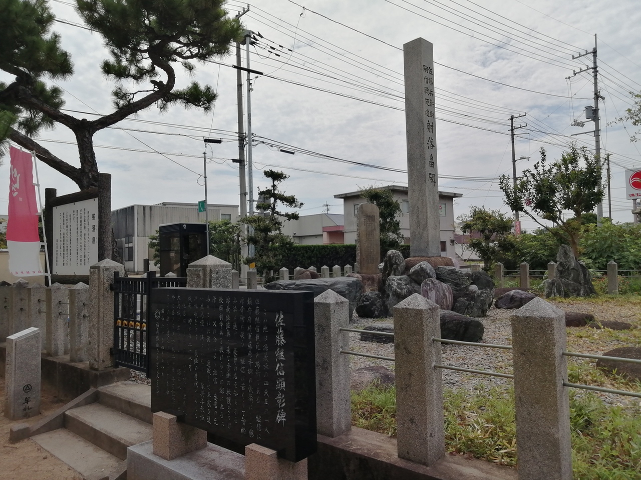 由緒板によると寿永4年(1185年)2月19日、源平合戦の際に源氏の武将佐藤継信が源義経の身代りとなり、平家の武将、平教経に射落された場所とのこと。それを示す石柱と継信を顕彰する石板が建てられています。