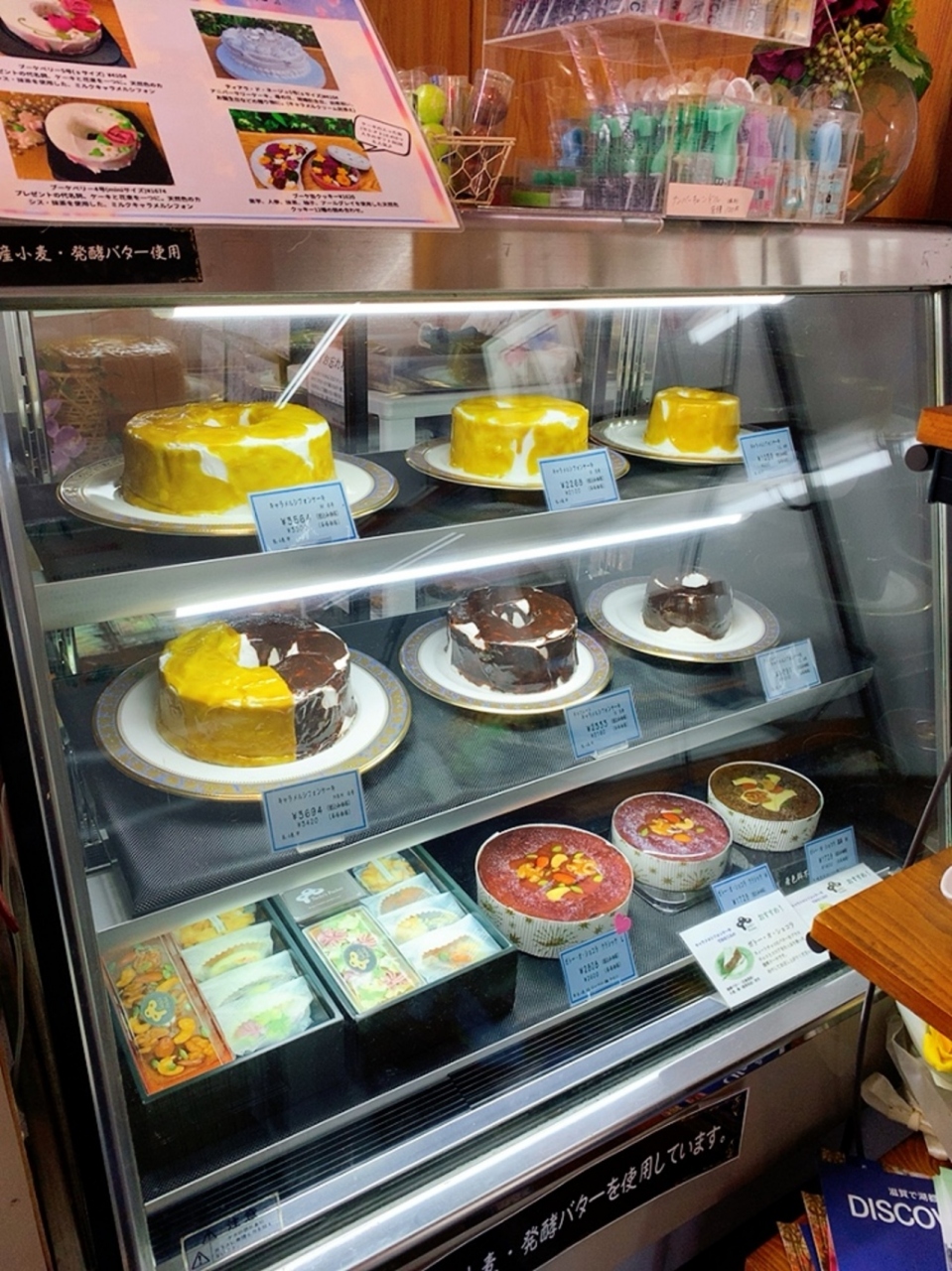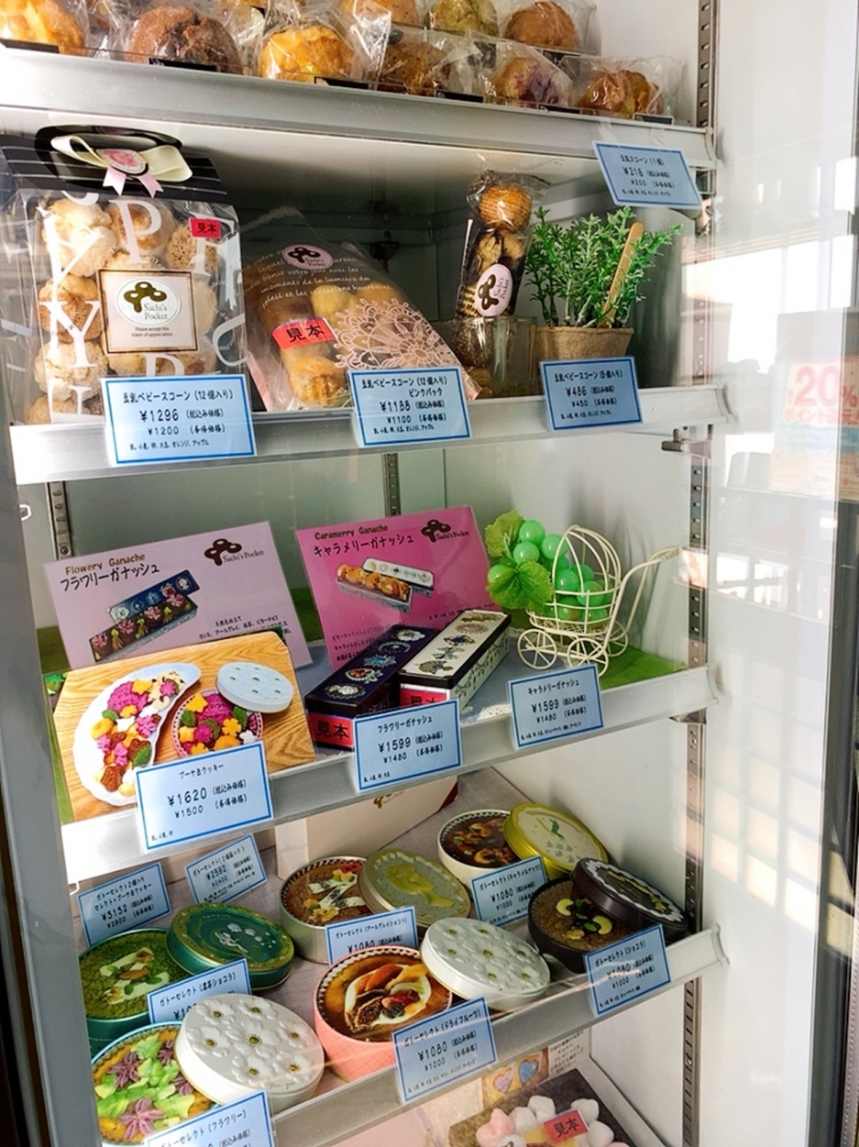 やっぱり売りは、キャラメルシフォンケーキ。 大きさが3種類あり、1番小さいのは1000円くらいで買えてリーズナブルです。 シフォンケーキやスコーンなどのスイーツは冷凍で販売しているので、家に帰ってからも冷凍なら保存が効きます。 冷蔵だと、数日以内なら美味しく頂けます。