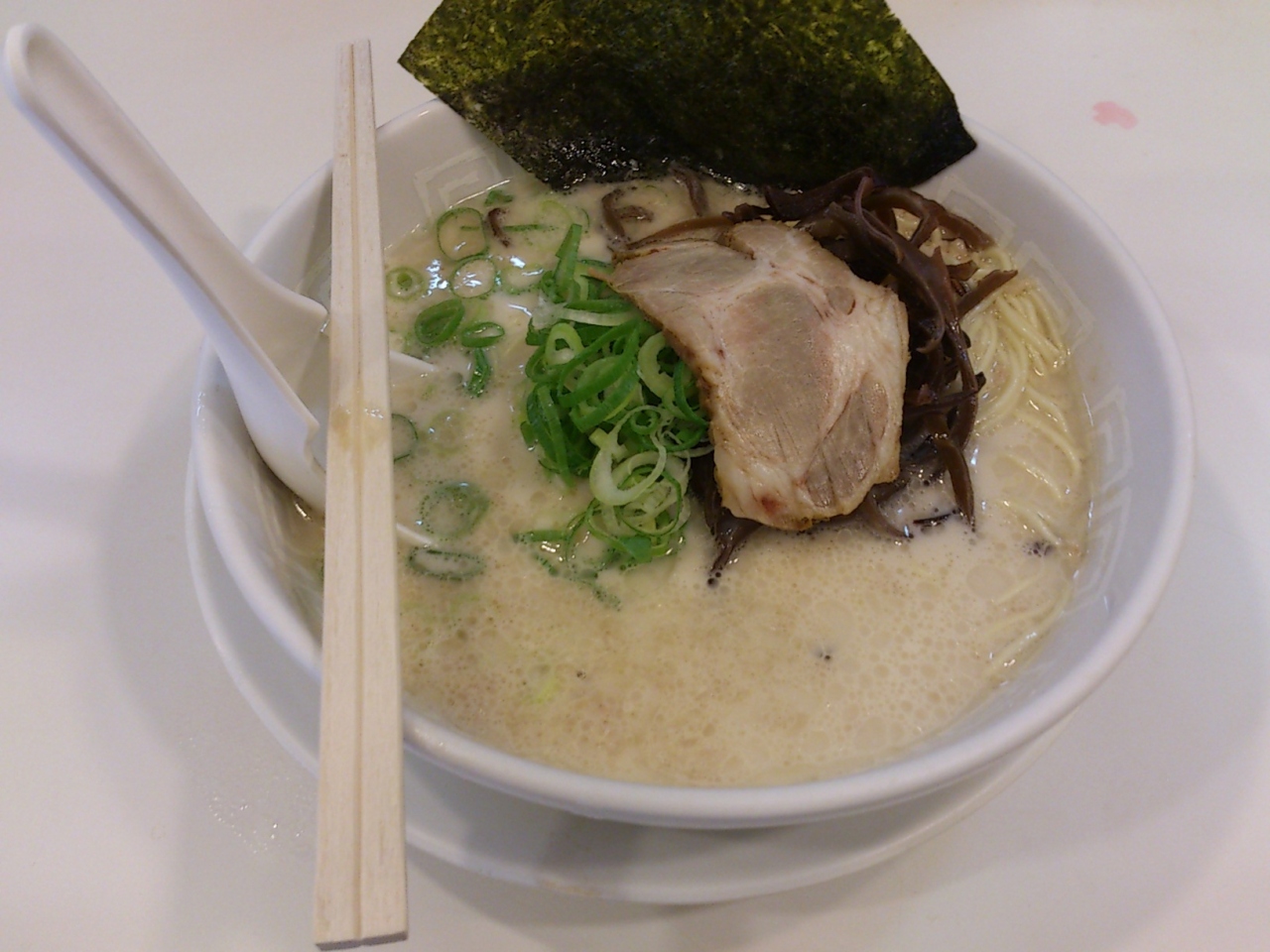 新橋駅烏森口からすぐ、博多天神の新橋店です。過去別の博多天神で食べたことはありましたが、新橋店は初めての利用。夕食でラーメンをいただきました。具は博多ラーメン定番のチャーシュー、キクラゲ、ネギで、極細ストレート麺と白濁した濃厚豚骨スープの一品です。癖の少ない豚骨スープで、替え玉が前提のせいか、麺の量が少なめ。食後物足りなさ感が残りましたが、とてもリーズナブルな値段だったので納得しました。