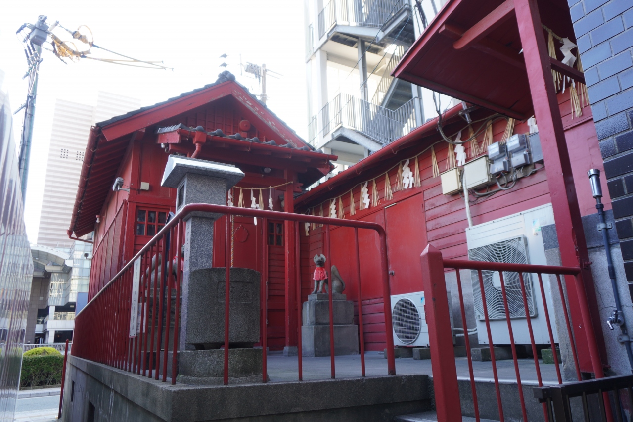 中州国廣稲荷神社は、中洲の一角。ビルとビルの間の細い路地の途中。