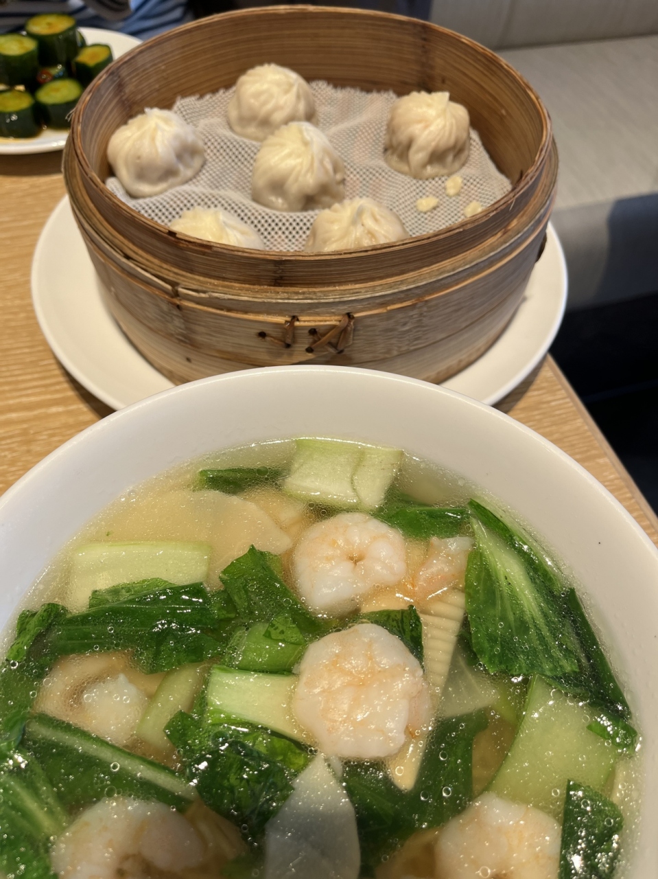 お昼も夜も行列が絶えない人気のお店。注文するメニューはたいてい決まっています。きゅうりのピリ辛、えびめん、小籠包はずわい蟹入り。全国どこに行っても美味しいのがいいですね。デザートのマンゴー杏仁豆腐もレベル高いと思います。