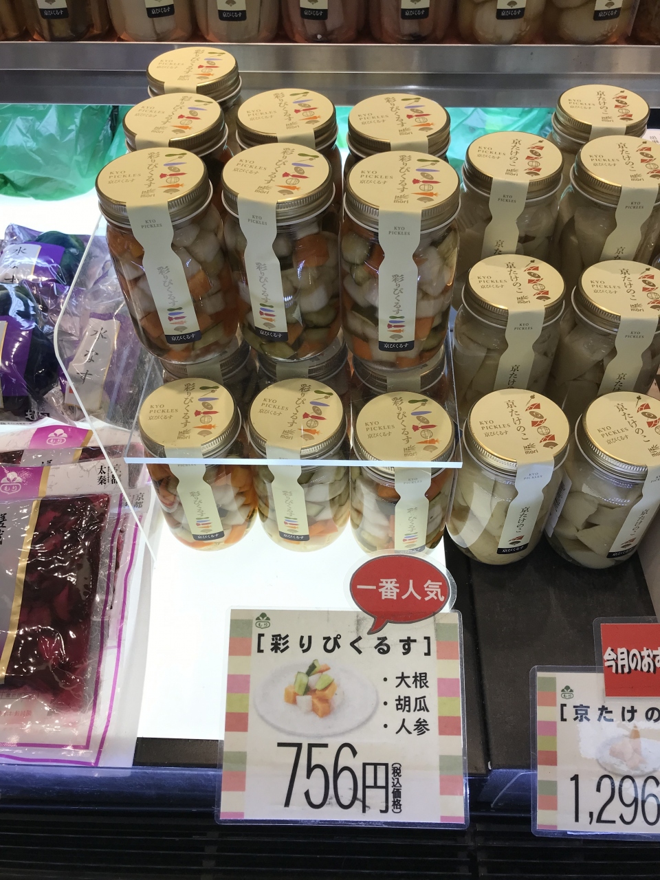 京つけもの もりで私の目を引いたのは「京ぴくるす」シリーズ。「大原の赤しそ大根」「人参きゅうり」「ごんぼさん」「こいもさん」「京たけのこ」などスティックタイプのピクルスです。京風ピクルスには、私の好きな村山造酢「千鳥酢」を使用されているようです。今回購入したのは「こいもさん」。小芋ピクルスの瓶詰です。芋本来の旨味と甘味が、酸味を帯びて趣深い味わいになっていました。次回も「京ぴくるす」シリーズを食べてみたいです。
