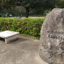 建物は何一つなく、再建もされていません。ここにどんな建物があったのかということがところどころに説明があるのみとなっています。
