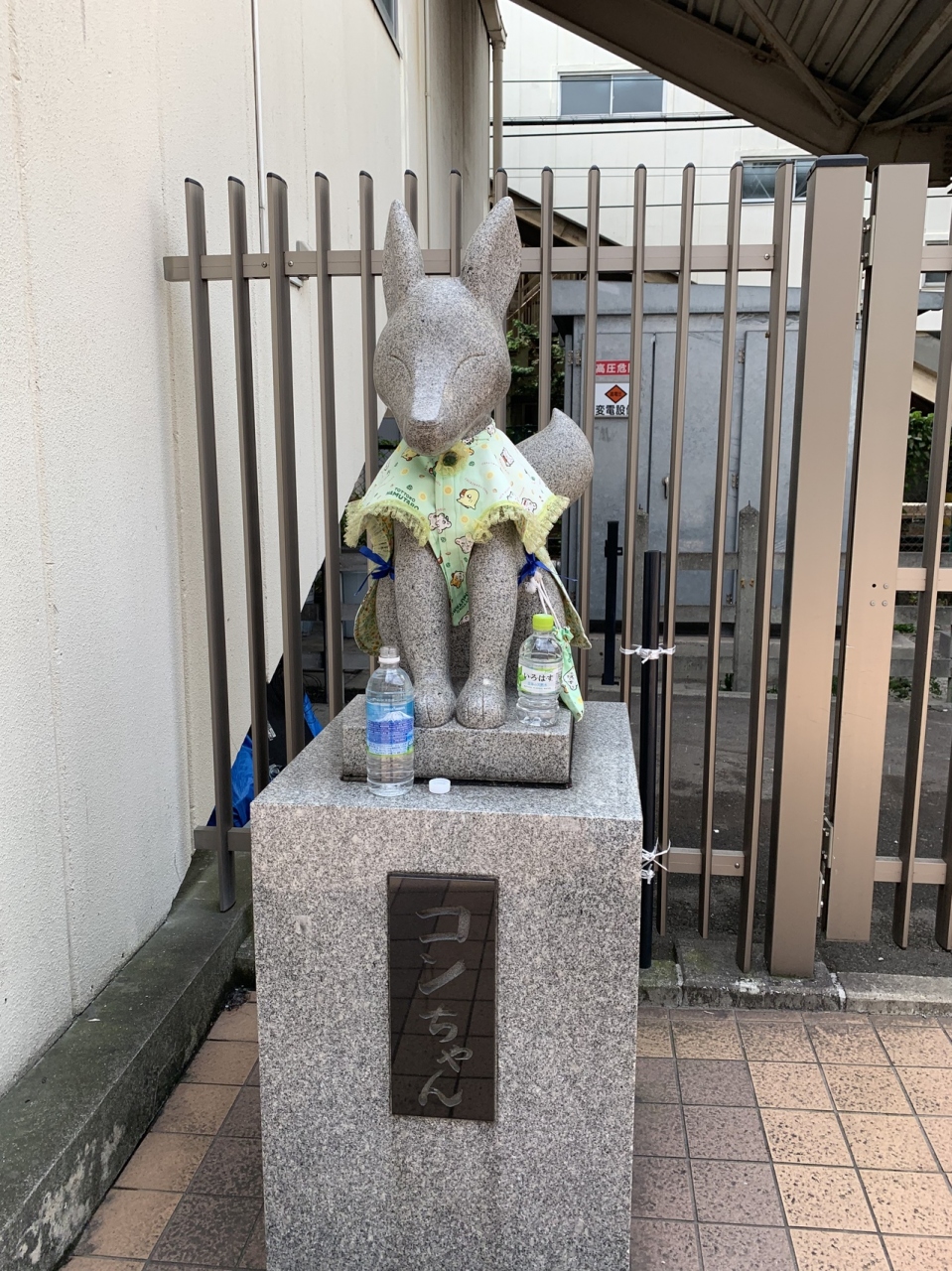 穴守稲荷駅を出てすぐに迎えてくれる、穴守稲荷のシンボル、コンちゃんです。管理されている方が季節によって衣装を変えてくれるそうです。私が見たときはとっとこハム太郎の洋服を着ていました。次に見るときはどんな衣装をきているか楽しみです。