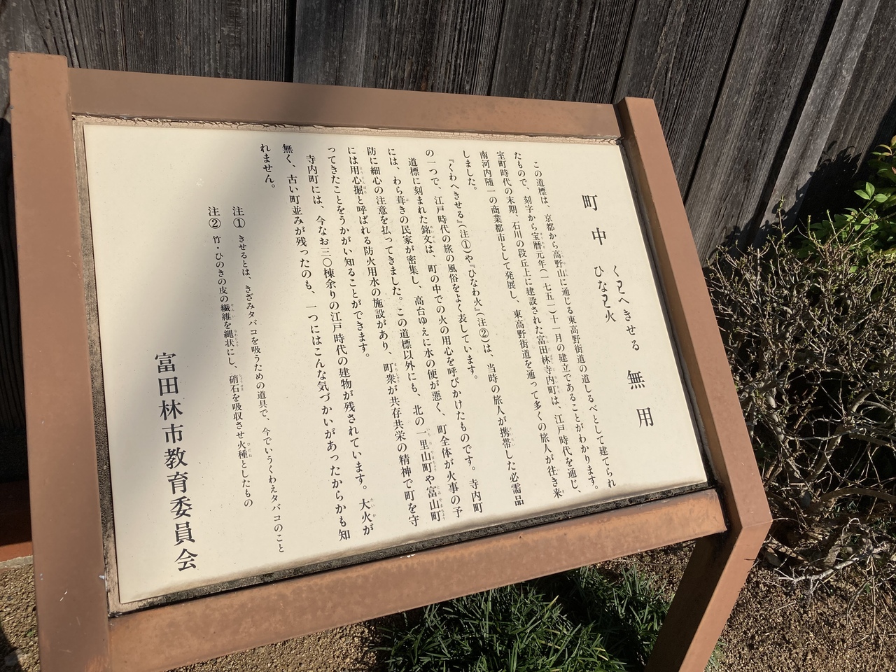 木造建築の多い地区においてきせるなどの火器の使用を禁じたという道標なのだそうです。