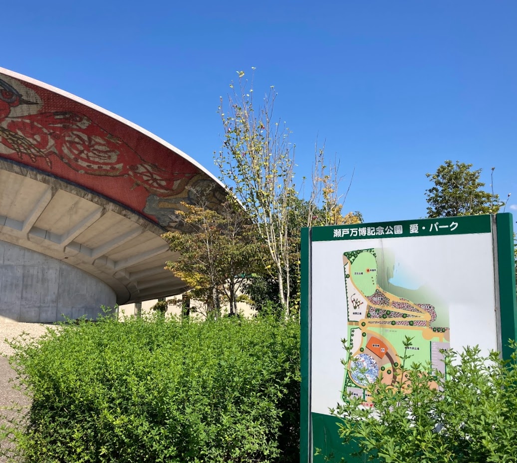 愛・地球博瀬戸会場の一部が公園になっています。キャラクターのモリゾーとキッコロの像もあります。