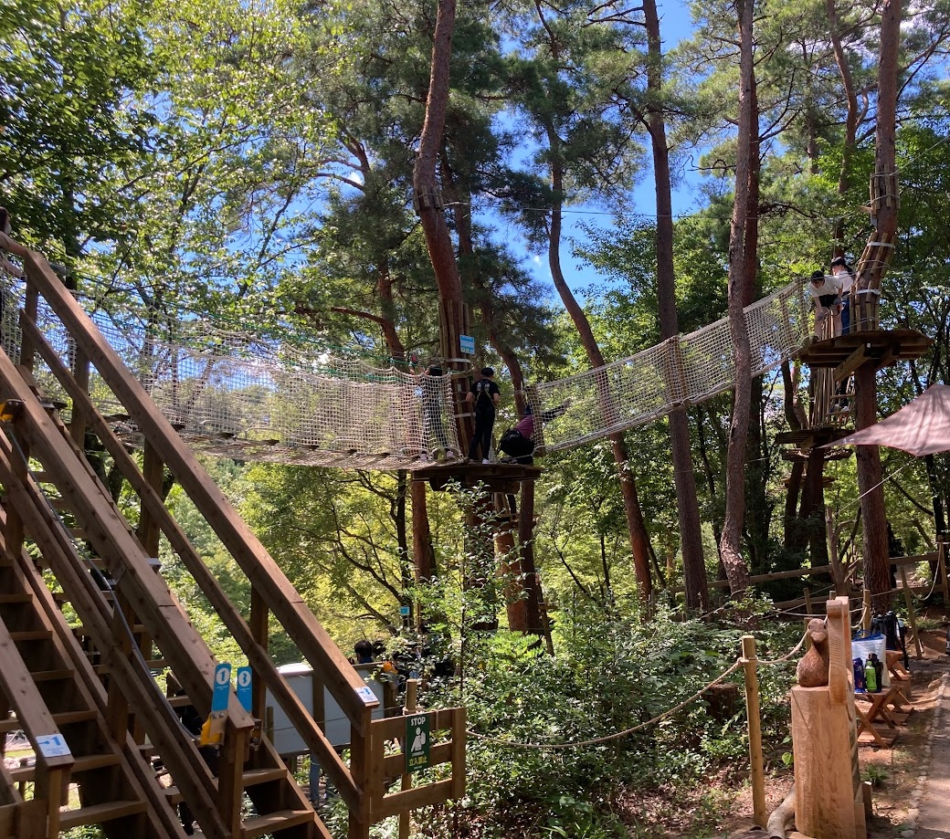 新城のフォレストアドベンチャーに誘われましたが、ネットで見ると私にはちょっと本格的すぎそうで、鞍ヶ池にも小学生でもできるキャノピーコースができたと知り、こちらに挑戦してきました。