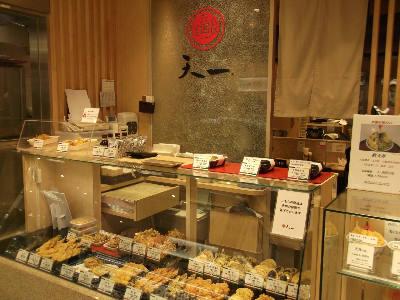 横浜駅東口隣接のそごう地下食料品店街にある、てんぷらの天一のショップです。ショーケースには、店内で揚げた魚貝、野菜の天ぷらが並んでいました。天一の天ぷらを家でも味わえるのはうれしいですね。イートインコーナーもあり、揚げたてを味わいたければ店内で天丼もいただけます。