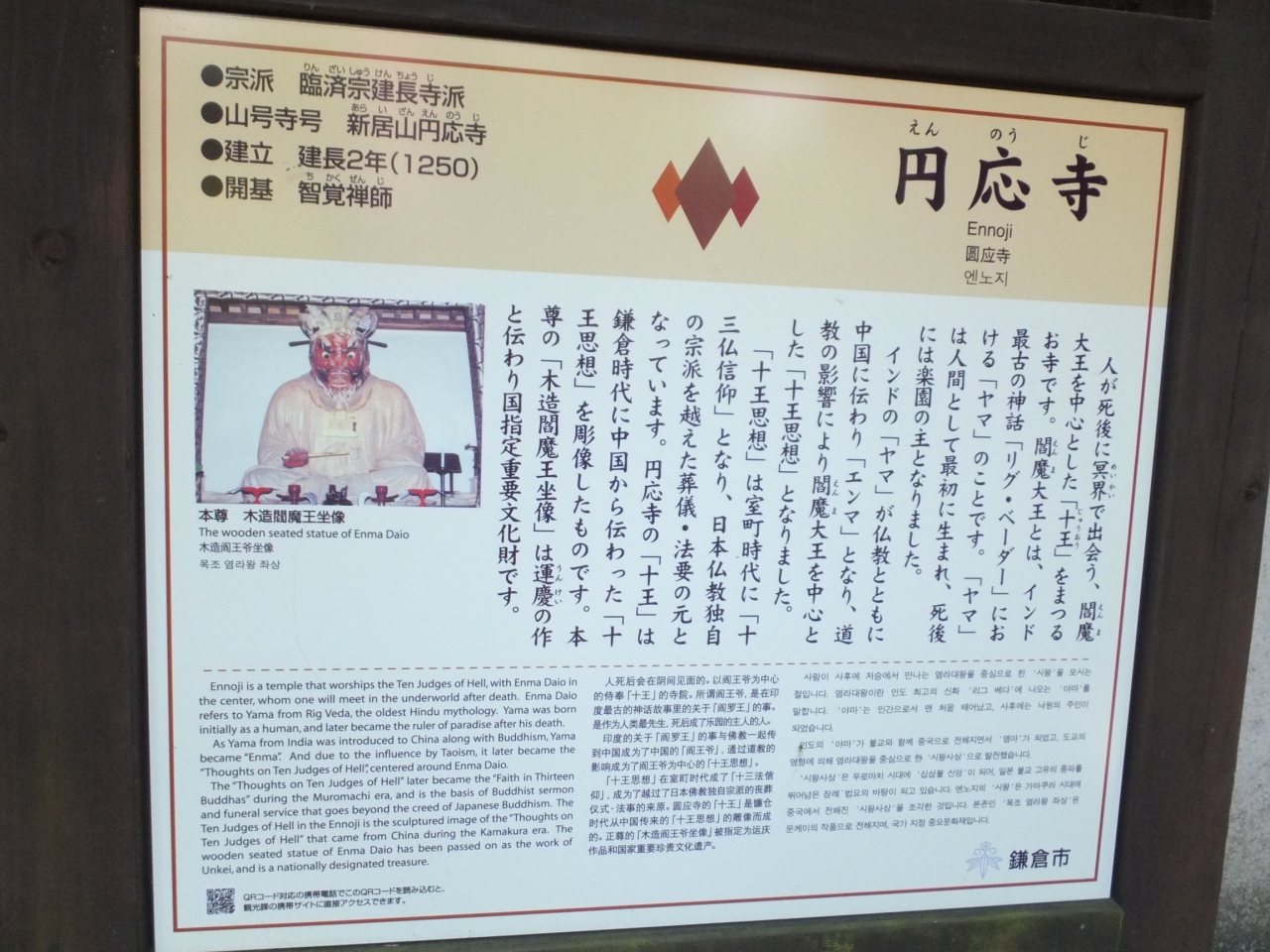 鎌倉の散策で参拝したお寺の一つです。入り口に急な階段があり、その階段のぼるとすぐに入り口です。境内は広くなくすぐに見学が終わってしまうのは残念ですが、閻魔様の像は迫力があってとても見事ですが、写真撮影はできないようです。緑の多い時期でした。